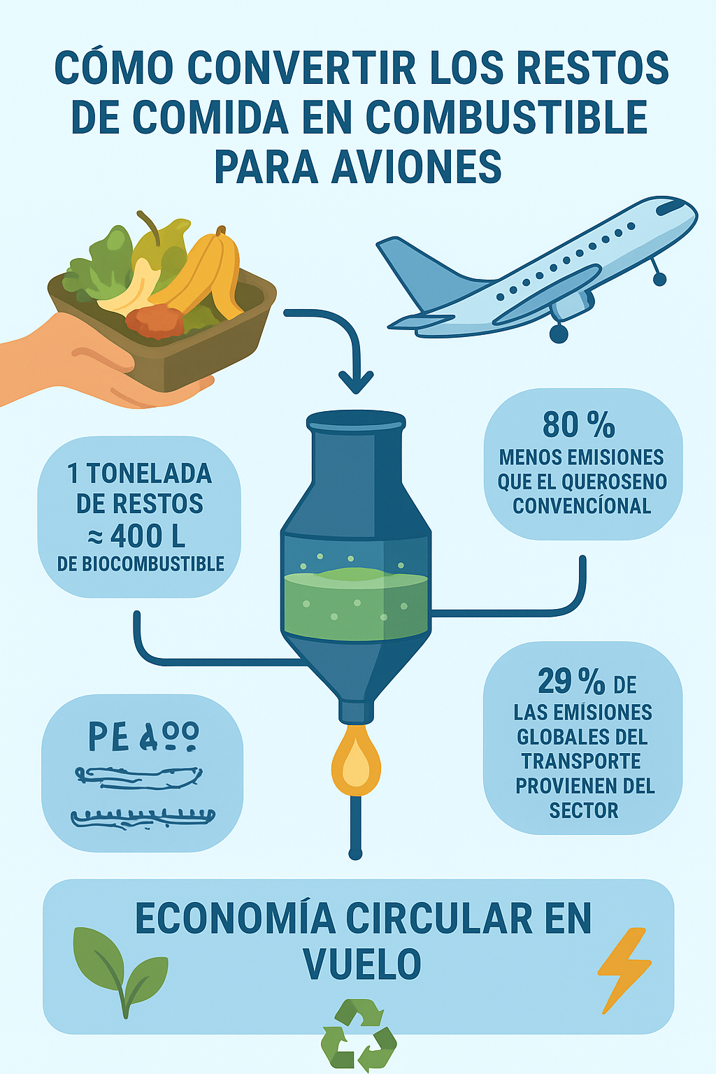 En el ámbito de la ingeniería energética aplicada a la aviación, se está explorando un planteamiento que rompe con el paradigma tradicional del combustible fósil: transformar residuos alimentarios en combustible para aviones. Esta idea, aparentemente poco convencional, ha sido desarrollada por un equipo de investigación de University of Illinois Urbana–Champaign.
