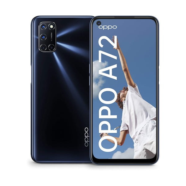 El OPPO A72 cuenta con una pantalla LCD IPS de 6,5 pulgadas con resolución FullHD+ (2400 x 1080 píxeles) y una tasa de refresco de 60 Hz. En el panel cuenta con una perforación en la esquina superior izquierda donde va alojada la cámara frontal, que ofrece 16 megapíxeles de resolución.